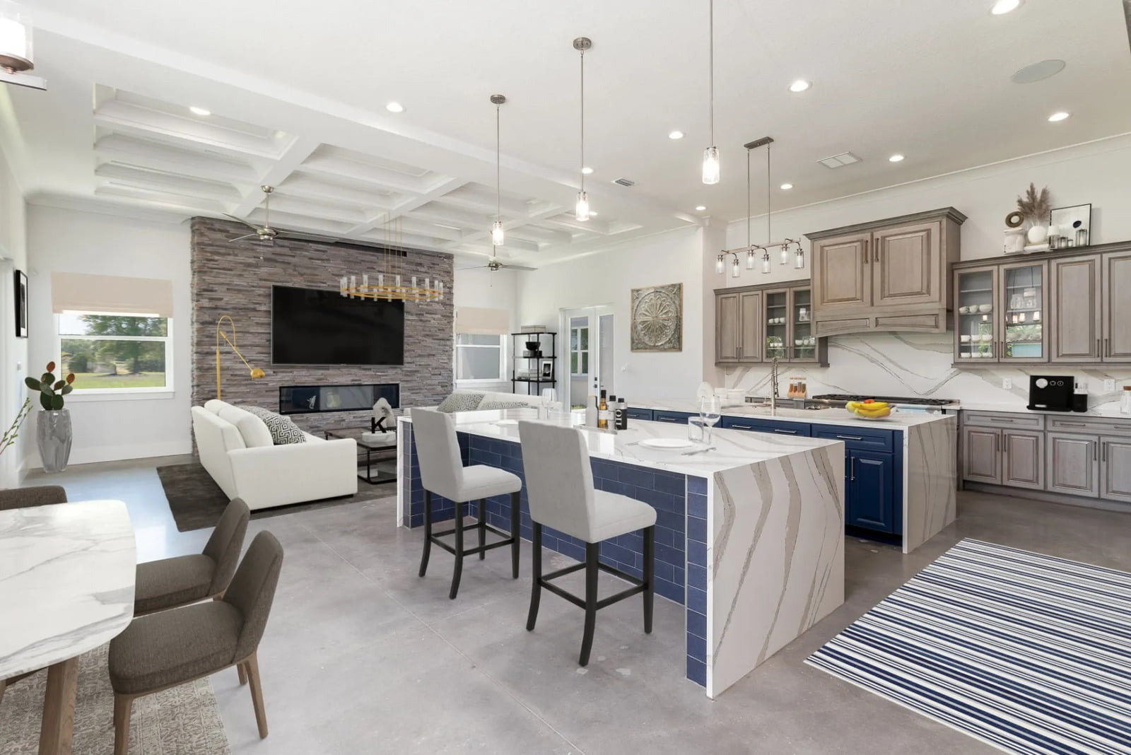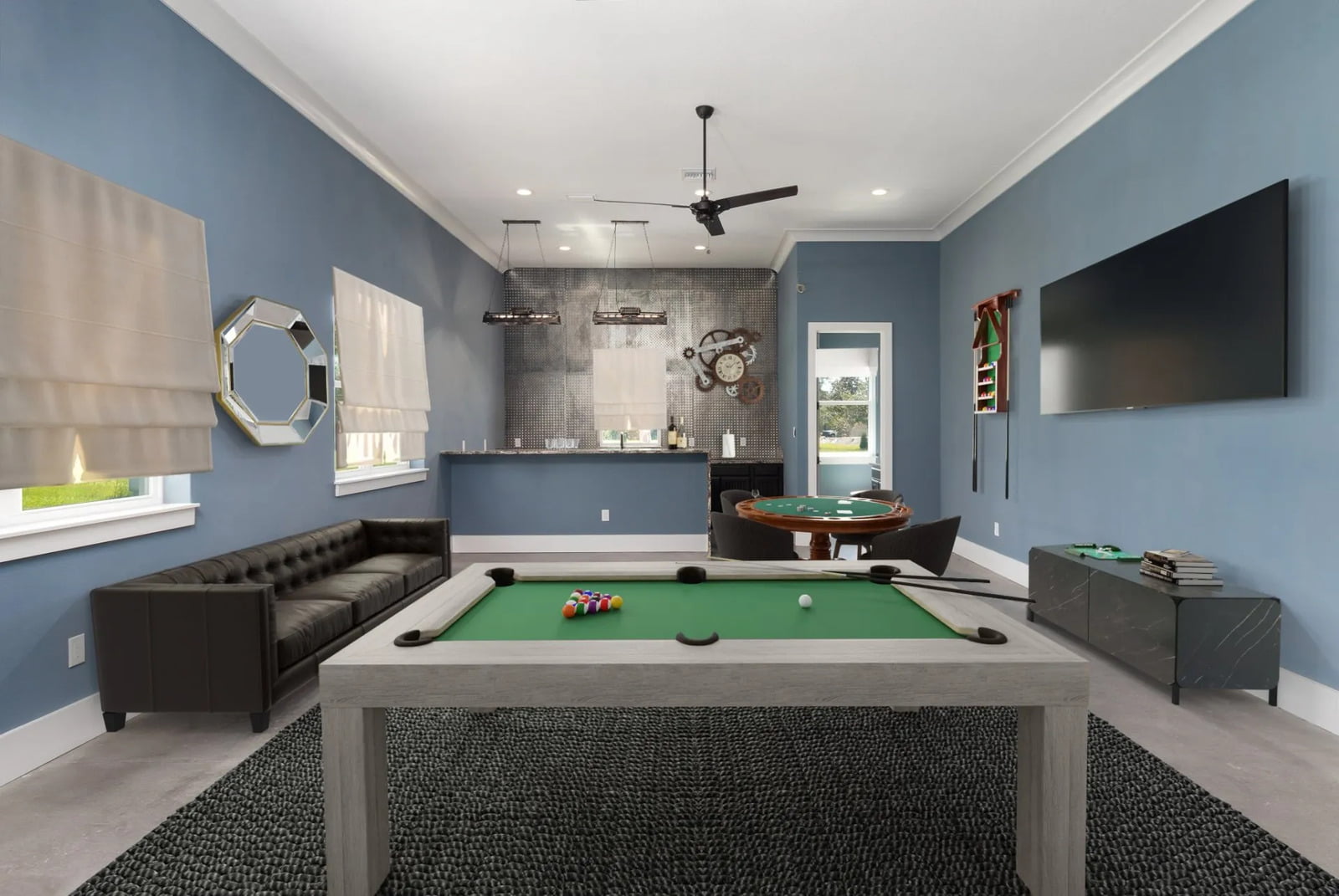 Imagine coming home to this lavish modern estate boasting a wine cellar, game room, and a double island kitchen. Melt your stress with an aromatherapy soak in the stone tub or have a fun family game night playing billiards or cards. However you choose to recharge and reconnect, this home is built to make lasting memories.